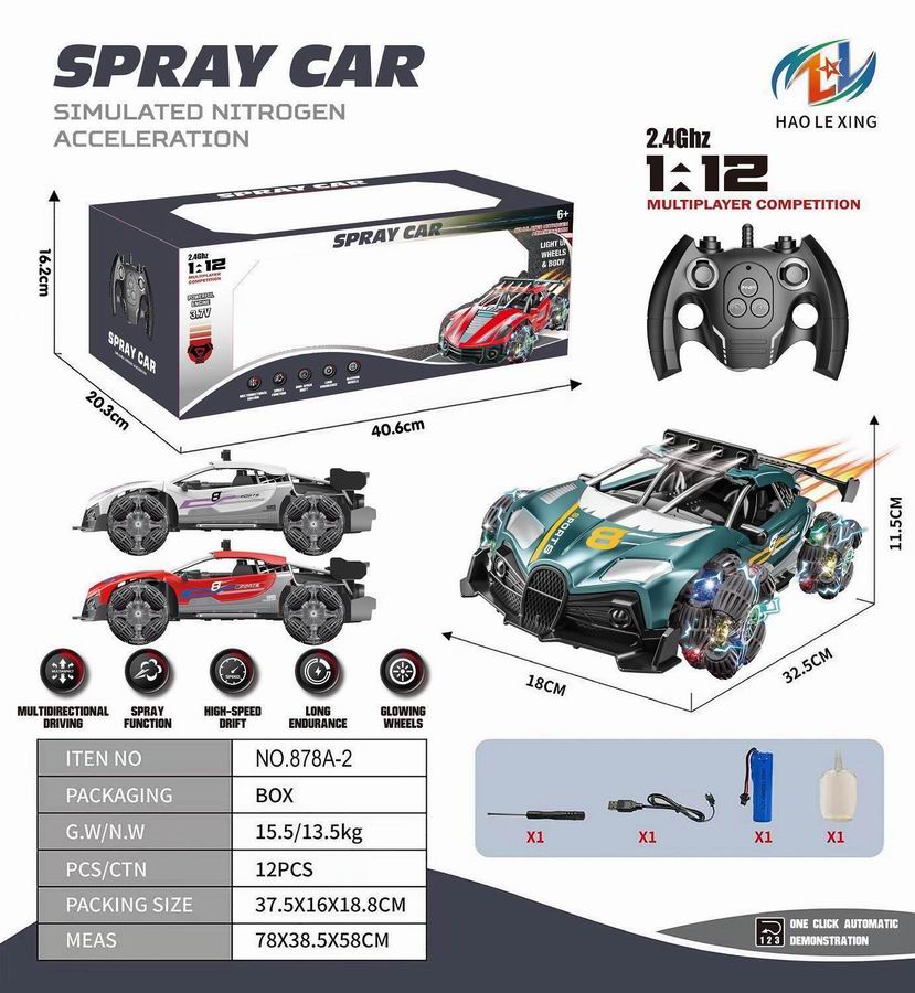 2.4G 1:12 两驱六通高速喷雾遥控车(保时捷)