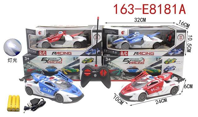 五通仿真遥控警车一键开三门带前灯1:20(包电)