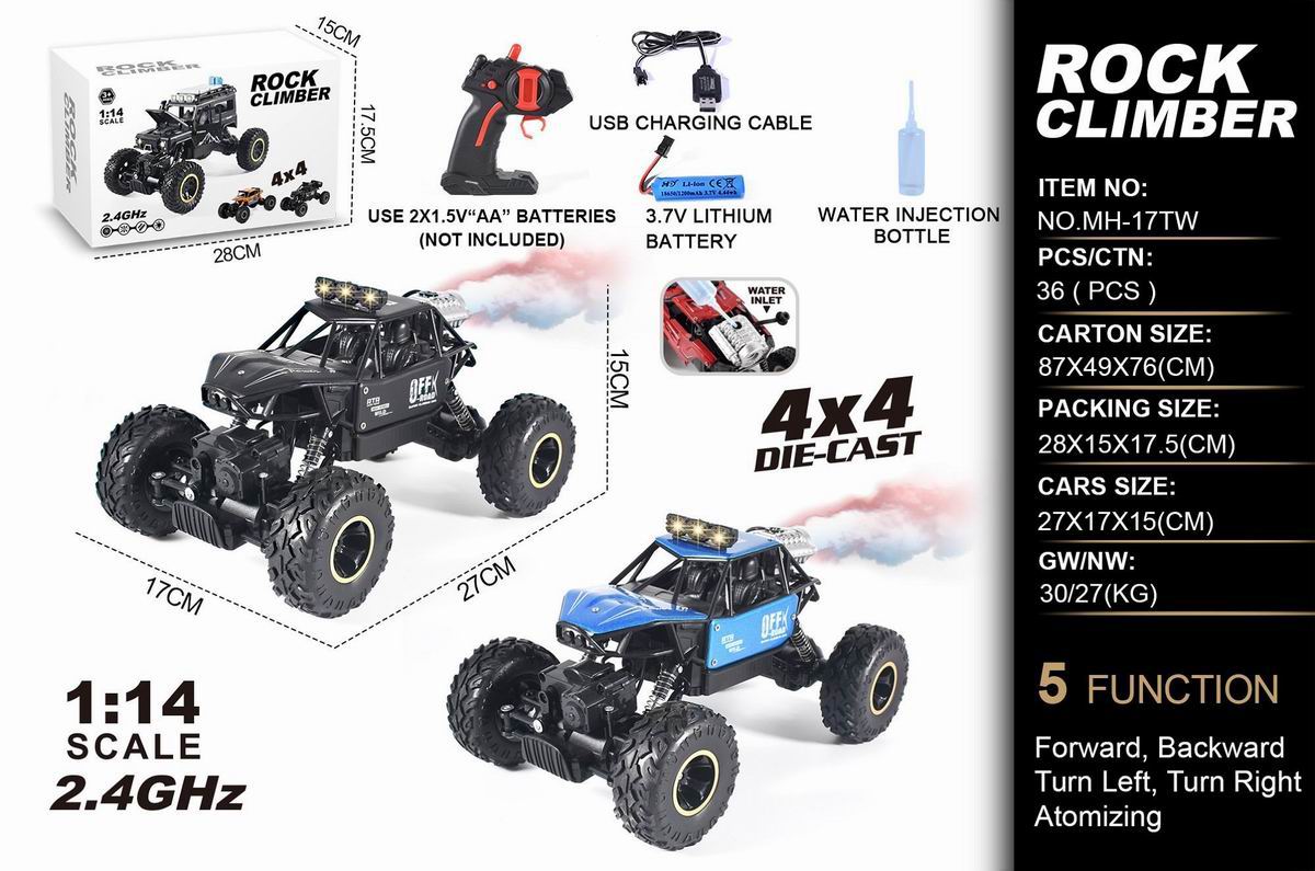 1:14 合金四驱5通攀爬遥控车带喷雾(包电)2.4G |