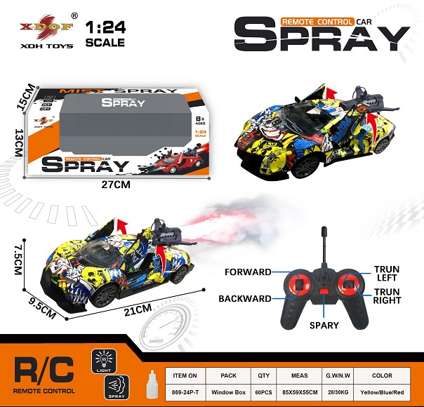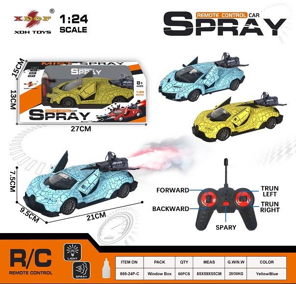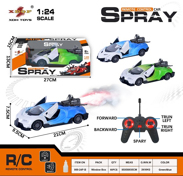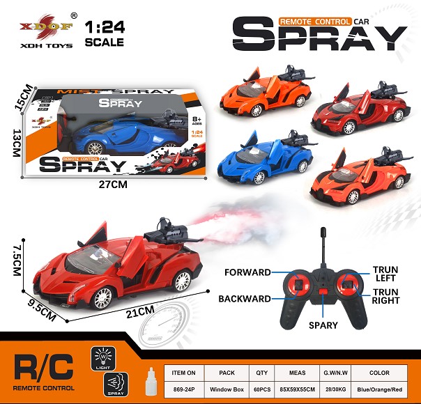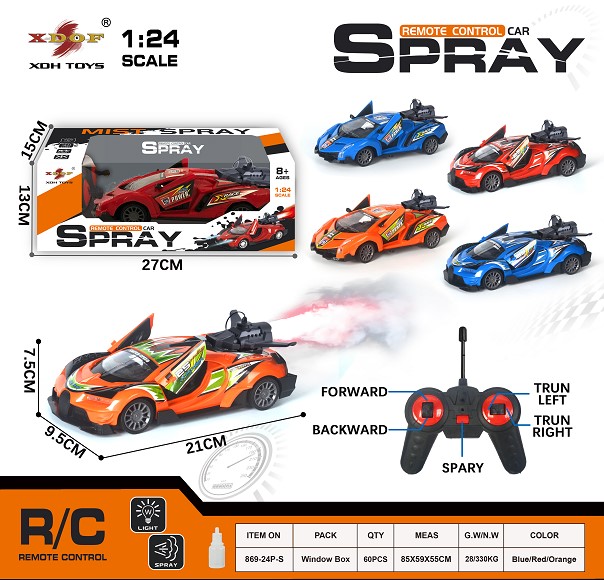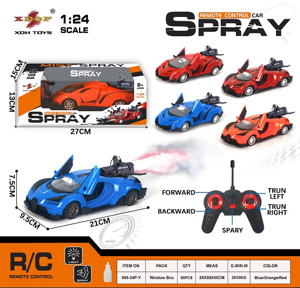 1:24赛车 遥控喷雾带前车灯 一键开门仿真赛车 2款各3色混装 27频 不包电 |