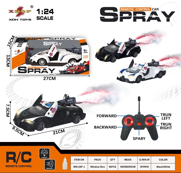 1:24警车 遥控喷雾带前车灯 一键开门仿真警车 2款各2色混装 27频 不包电 |