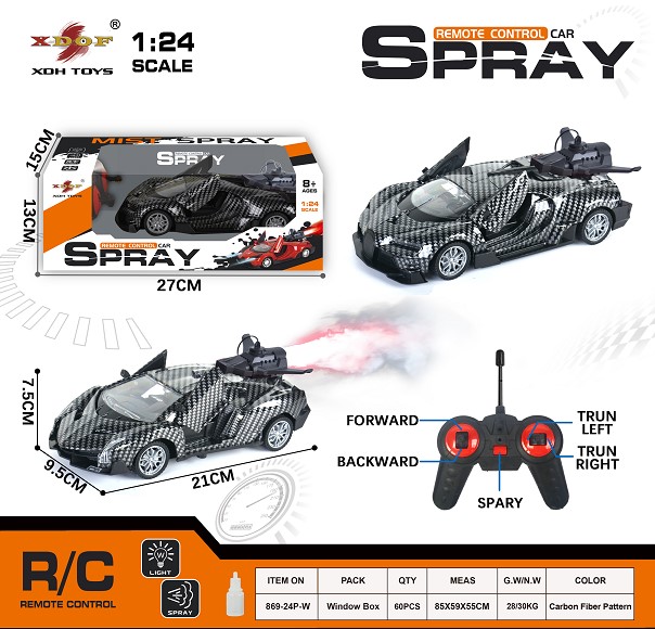 1:24碳纹 遥控喷雾带前车灯 一键开门仿真车 2款混装 27频 不包电 |
