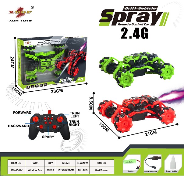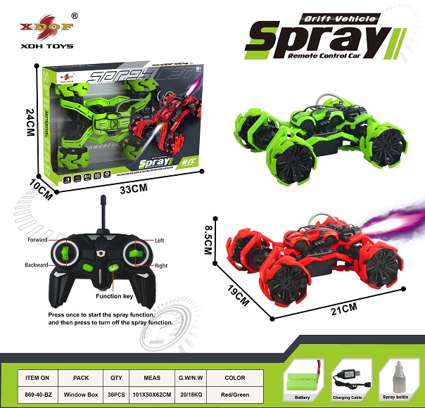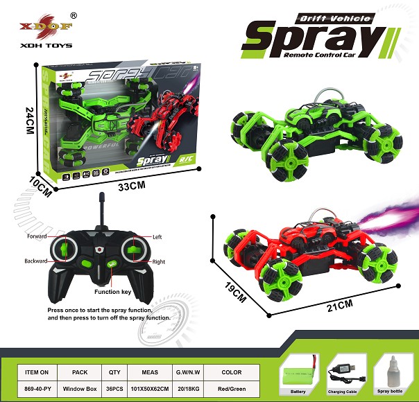 2.4G遥控横移喷雾蜘蛛特技车 包电 红色/绿色 |