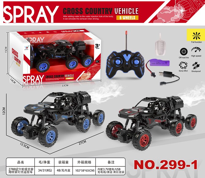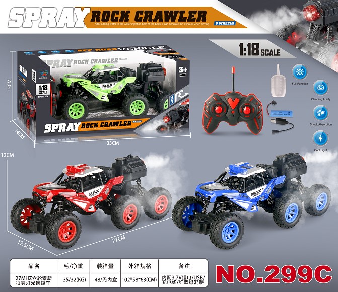 27MHZ五通道六轮攀爬喷雾灯光遥控车 1:18
