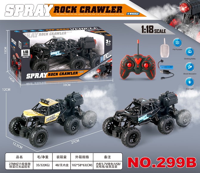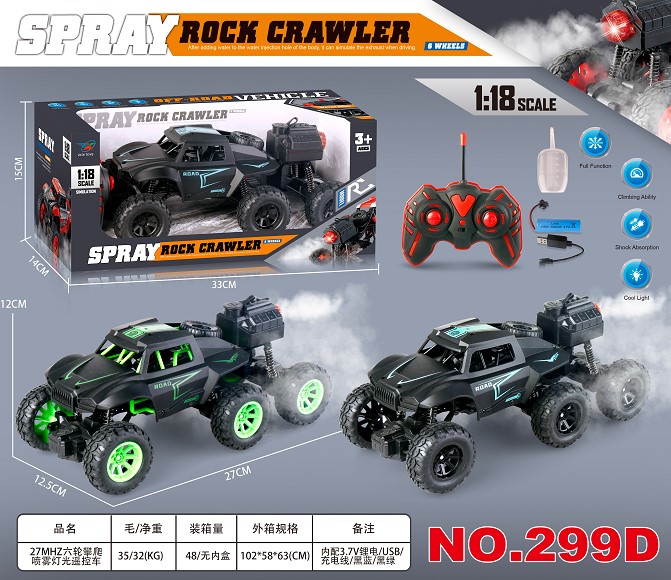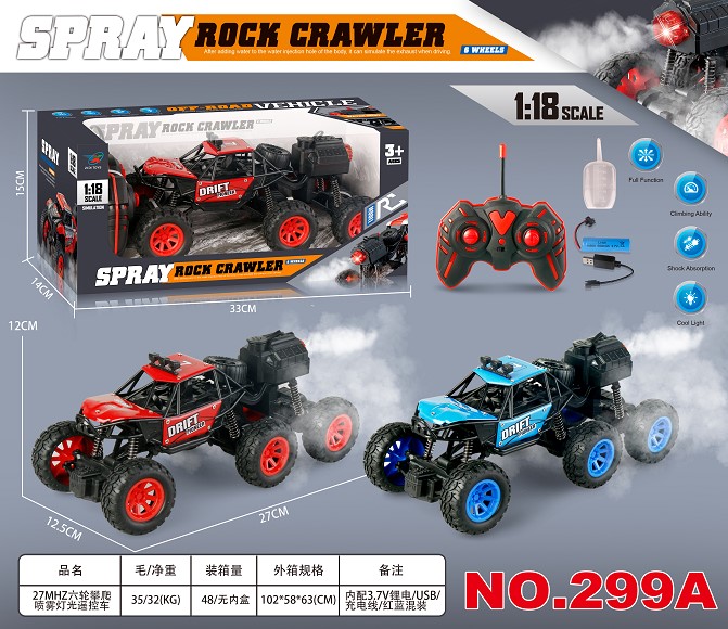 27MHZ五通六轮攀爬喷雾灯光遥控车 1:18