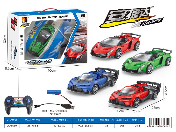 开窗盒四通遥控车(四色混装、配电池)