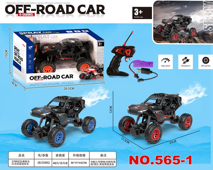 27MHZ五通哑光灯光喷雾遥控车 1:18