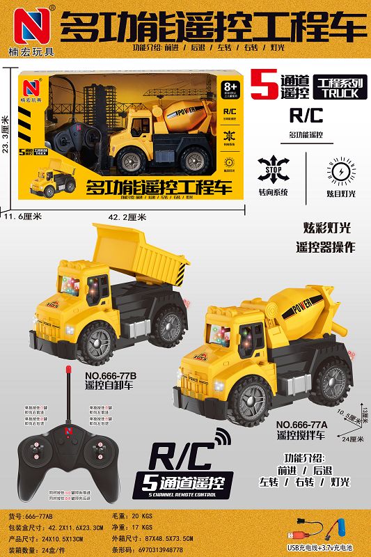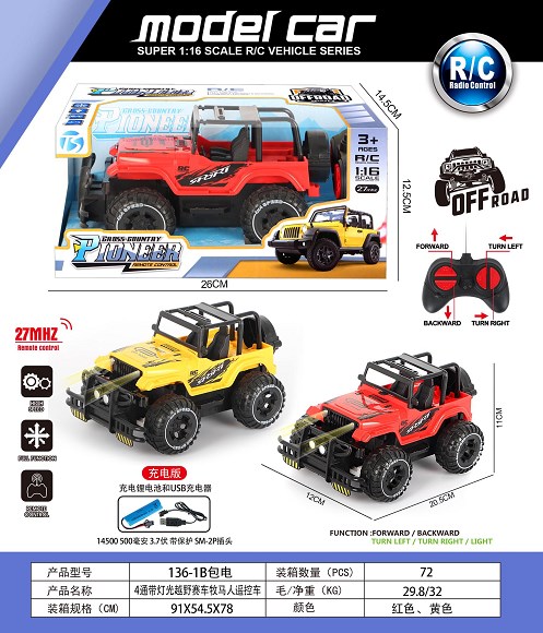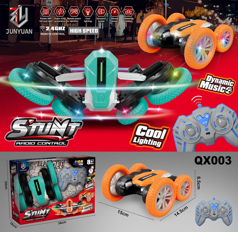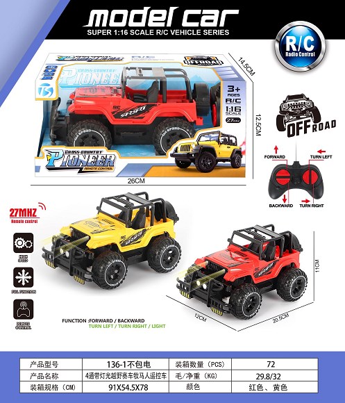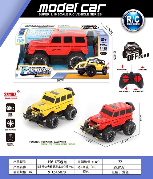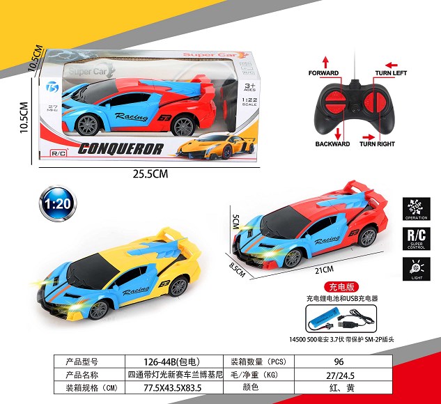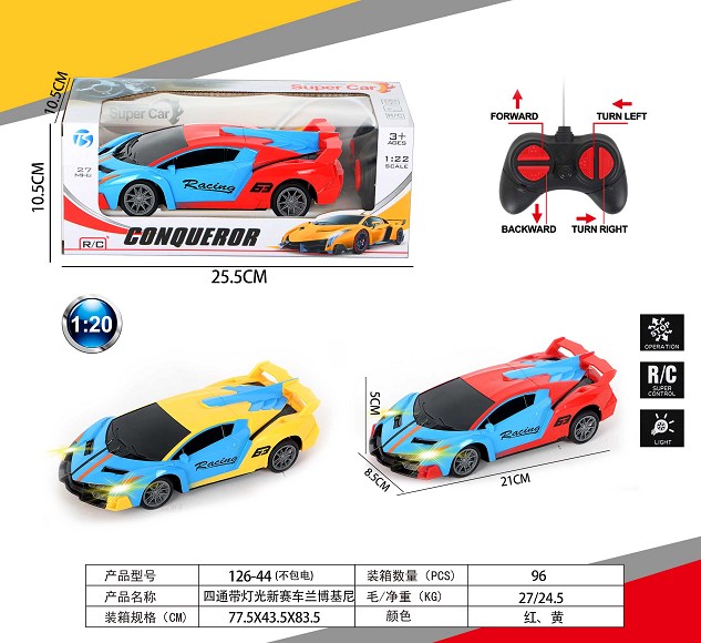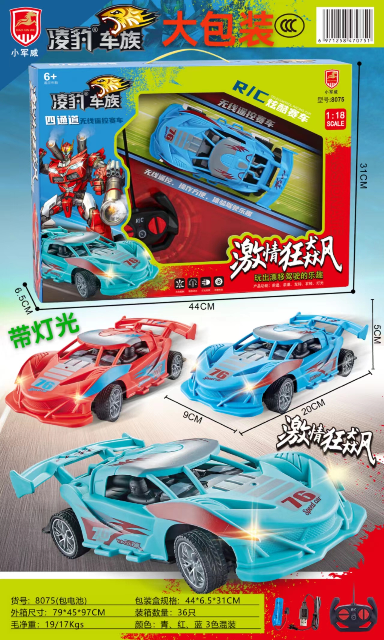 开窗盒四通车轮带灯遥控车(八款混装、配电池)