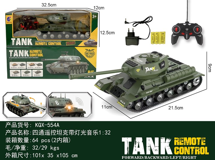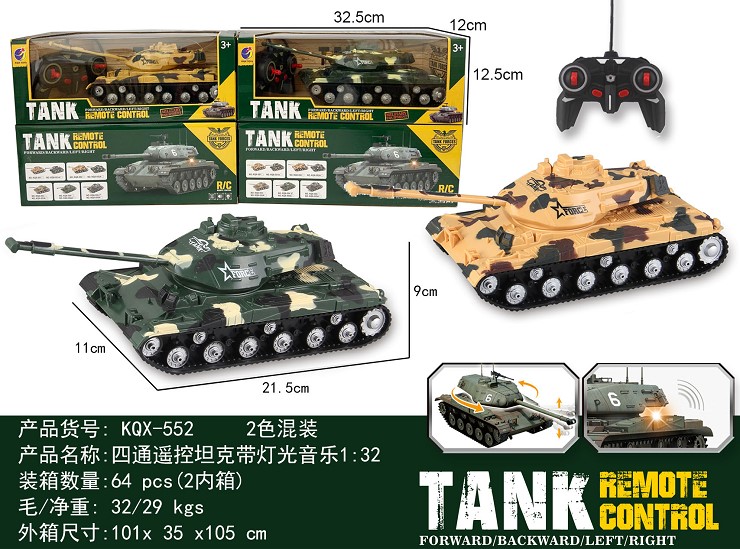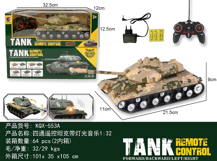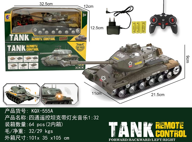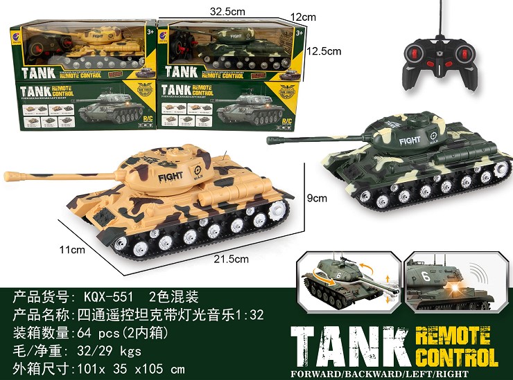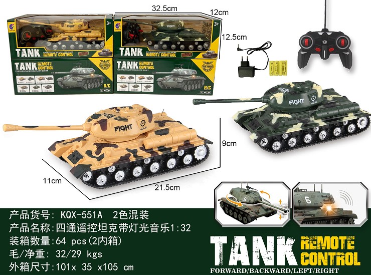 四通遥控坦克带灯光音乐1:32(包电) 2色
