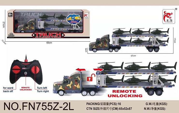 遥控5通自动卸卡短货柜车(配4只直升机) 前进 后退 左转 右转 停止 |