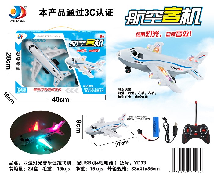 四通灯光音乐遥控飞机