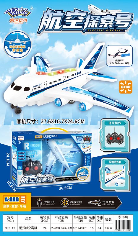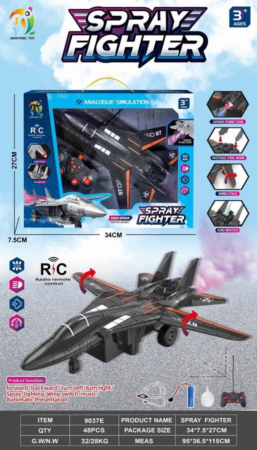 1:16九通遥控飞机一键遥控展开收缩翅膀自动演示带3首音乐.灯光.喷雾