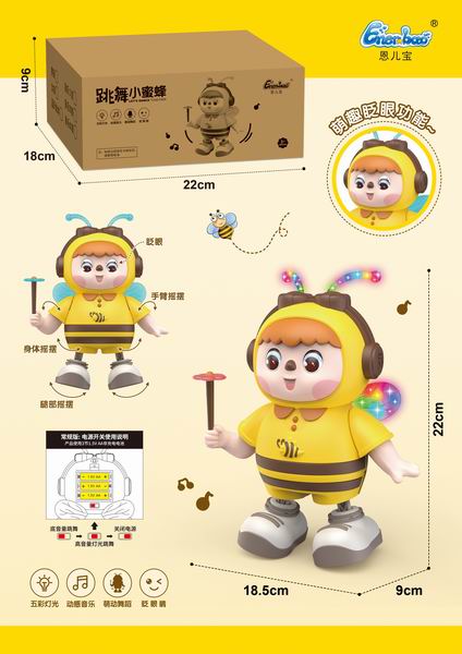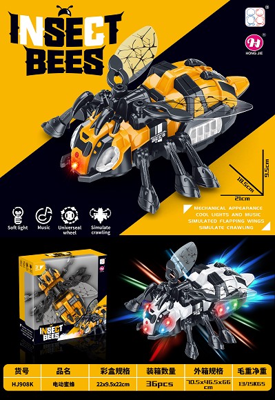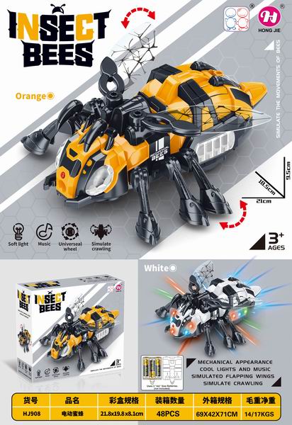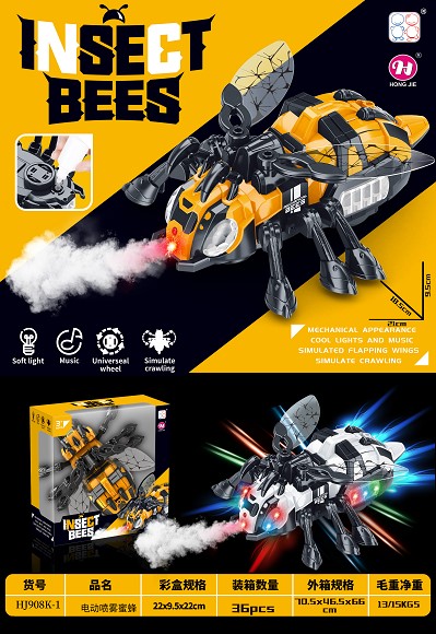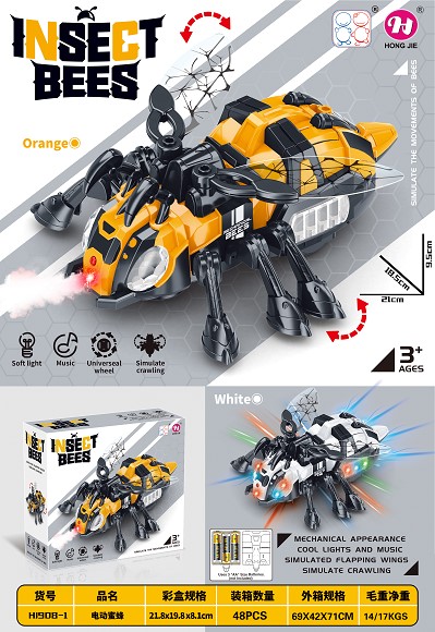 电动机械万向蜜蜂,带灯光音乐,翅膀摆动,肢体摆动,万向行走(两色混装)(不喷雾)。 |