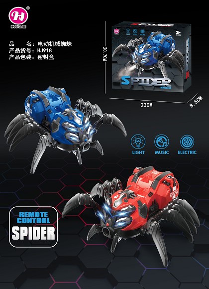电动机械万向蜘蛛,带灯光音乐,肢体摆动,万向行走(两色混装)(不喷雾)。 |