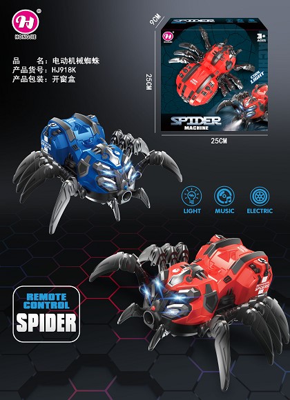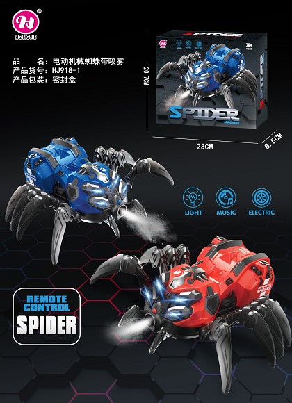 电动机械万向蜘蛛,带灯光音乐,肢体摆动,万向行走(两色混装)(喷雾)。 |