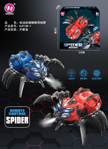 电动机械万向蜘蛛,带灯光音乐,肢体摆动,万向行走(两色混装)(喷雾)。