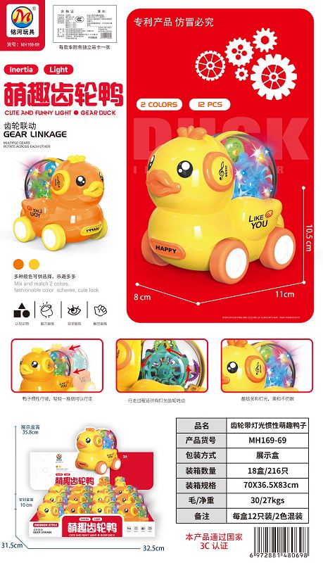 齿轮带灯光惯性萌趣鸭子(12只装)