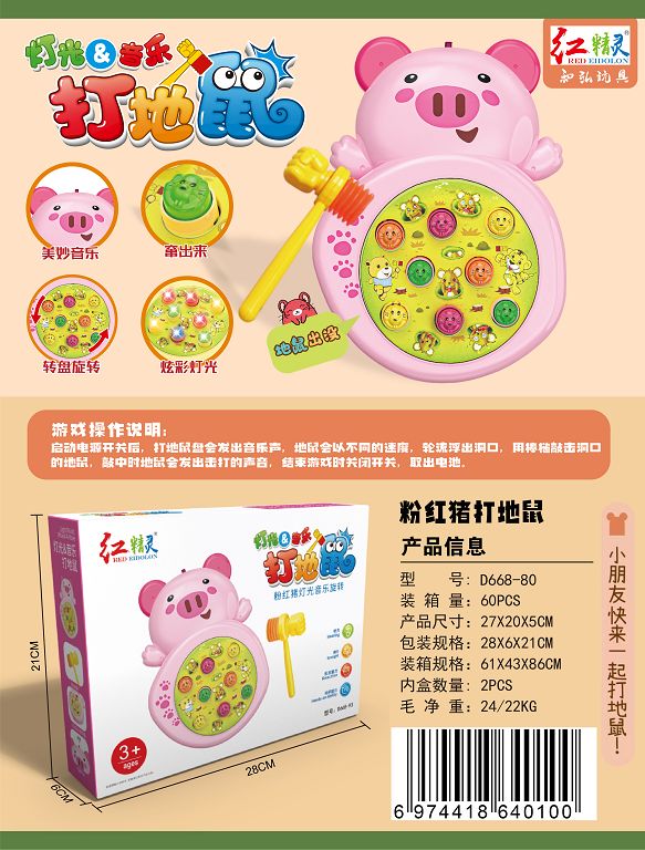 粉红猪打地鼠 (旋转、灯光、音乐)