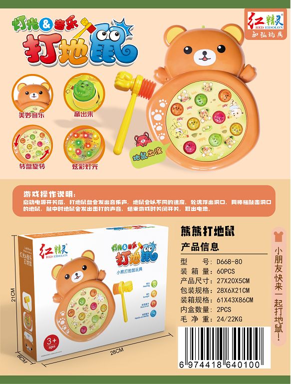 小熊打地鼠 (旋转、灯光、音乐)