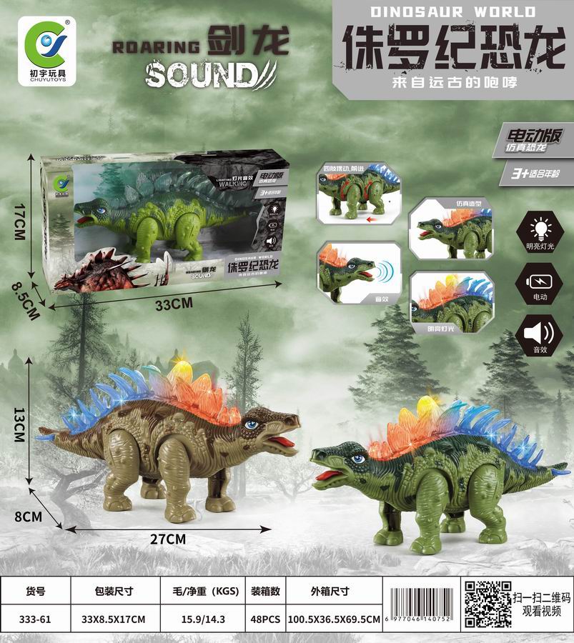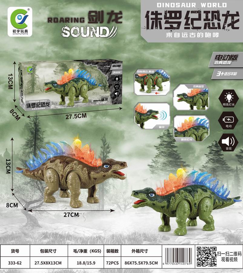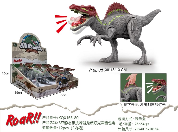 静态手按棘背龙6只装 ,带灯光声音下巴动 包电