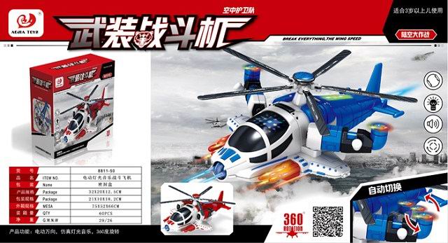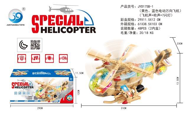 电动万向直升飞机,飞机声+枪声+7闪光.黄、蓝俩色混装 |