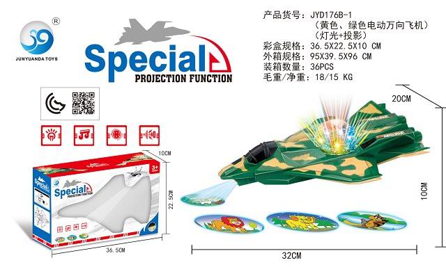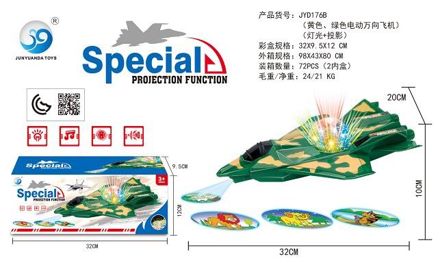 电动万向迷彩飞机,飞机声+前投影+黄、绿两色混装爆闪舞台灯 |