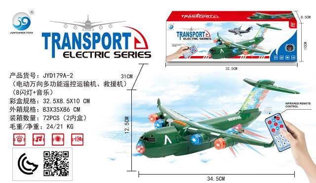 电动万向多功能摇控运输飞机、救援机、8闪灯+音乐(包含1粒钮扣电池)两色混装 |