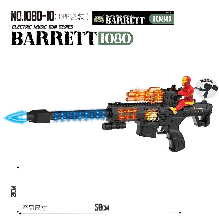 黑色电动仿真枪带钢铁侠、灯光、枪声、动作(配背带)