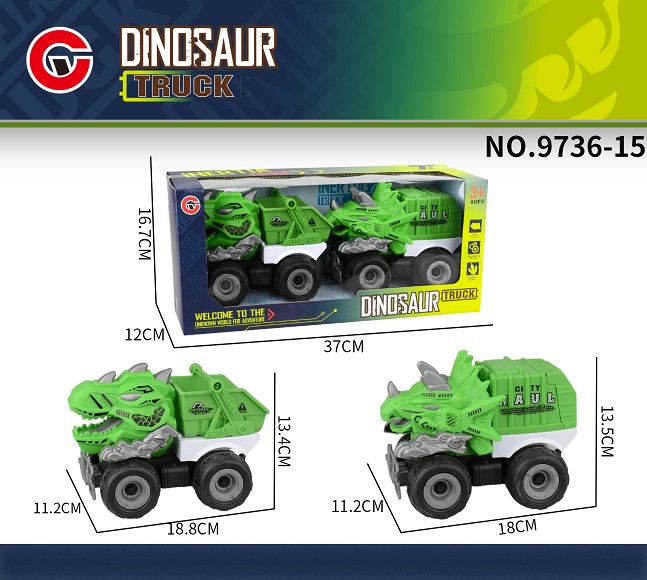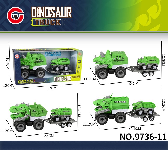 大号惯性恐龙环卫车载2只惯性恐龙车
