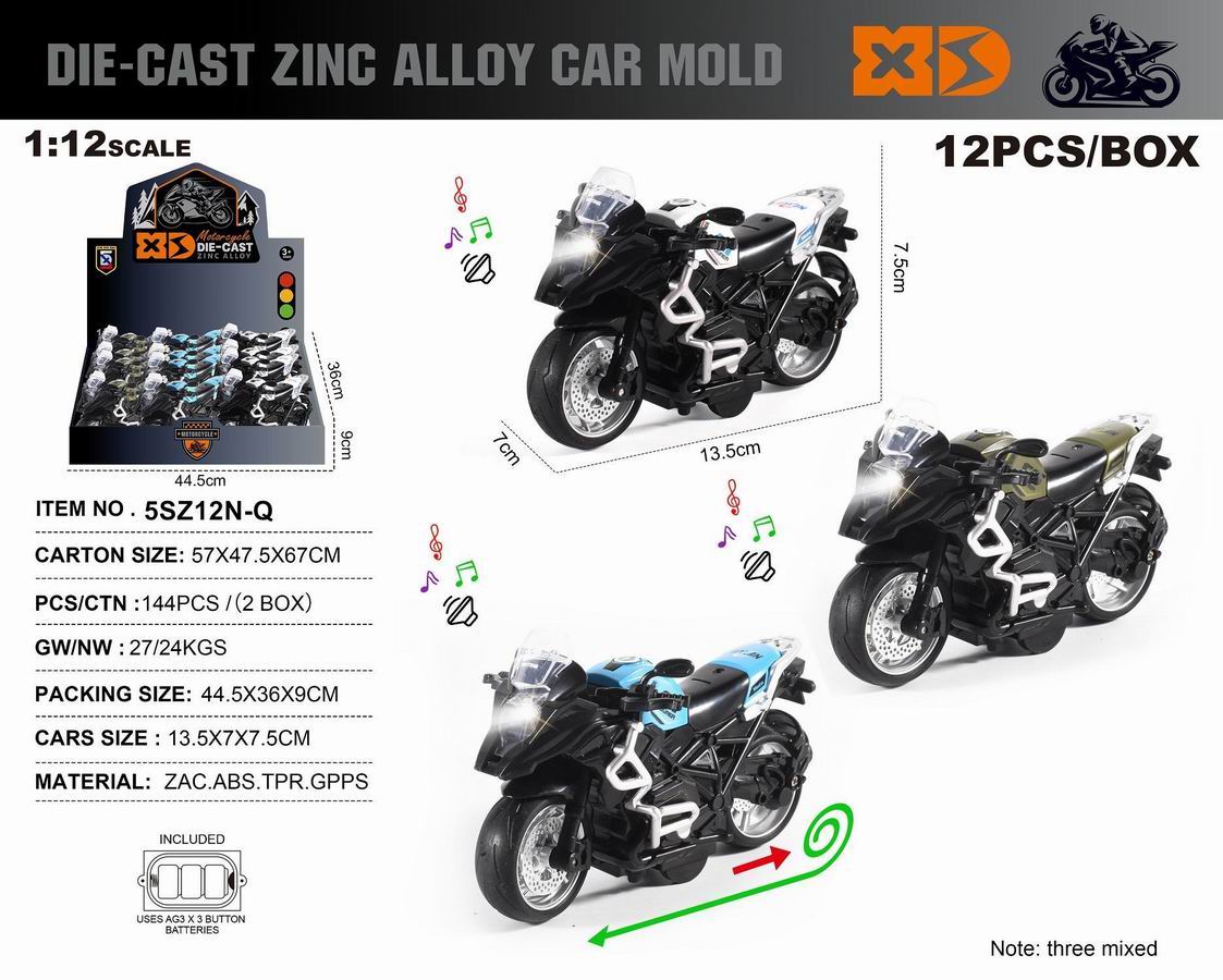 英文1:12压铸锌合金宝马水鸟摩托街 12只/展示盒 |