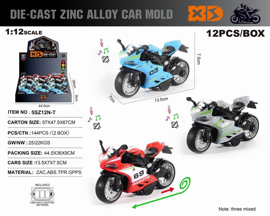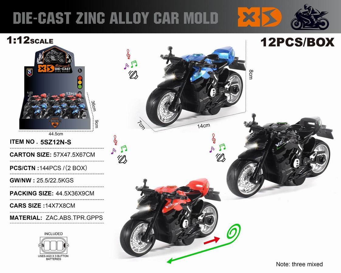 英文1:12压铸锌合金古斯塔摩托车 12只/展示盒 |