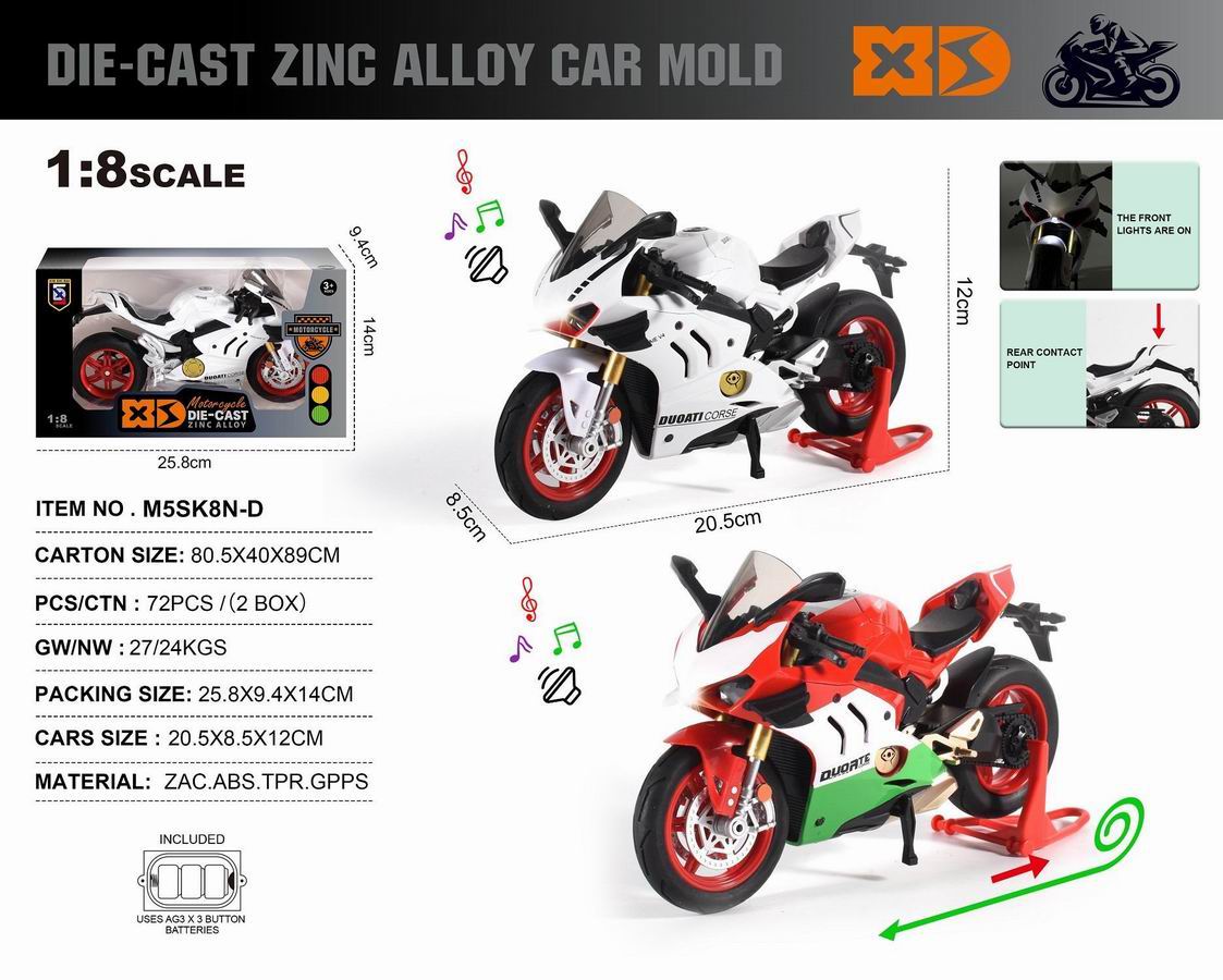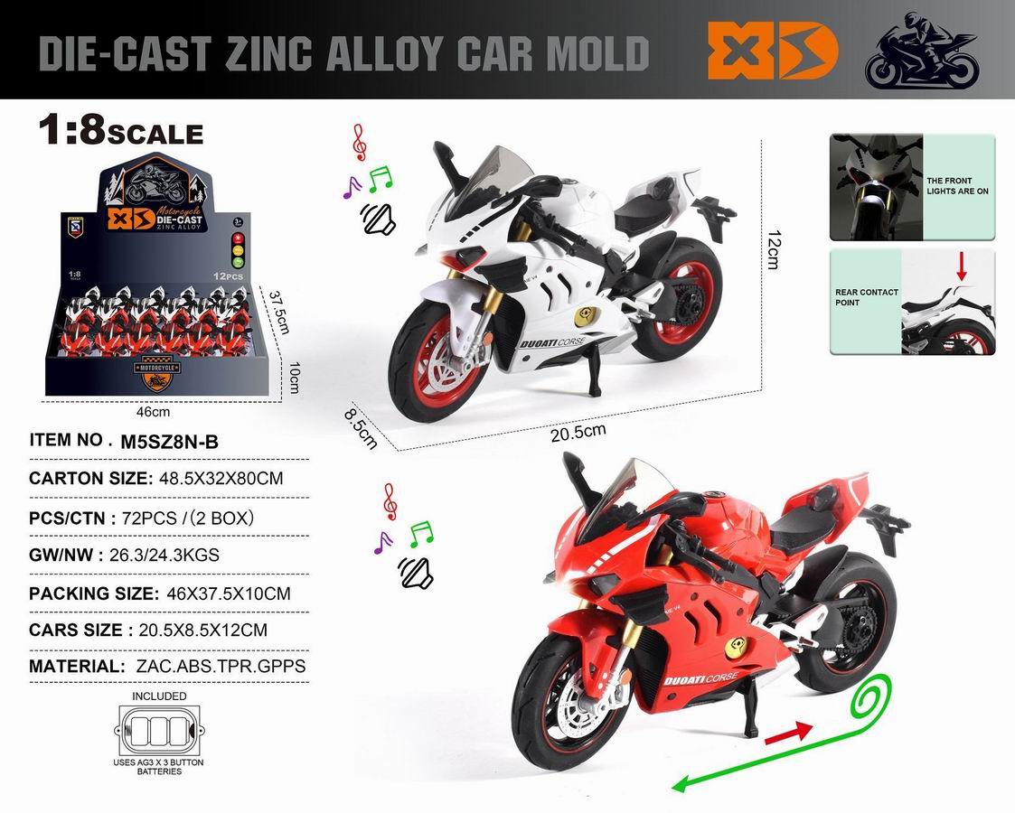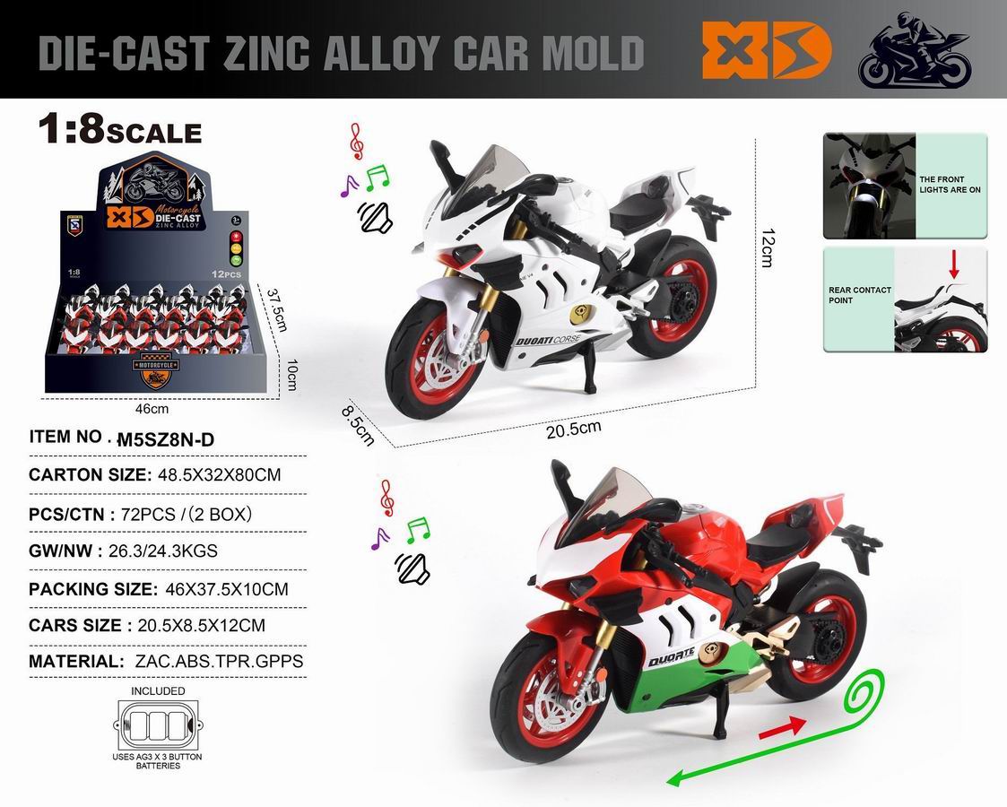 英文1:8压铸锌合金杜卡迪改装版摩托车 12只/展示盒 |