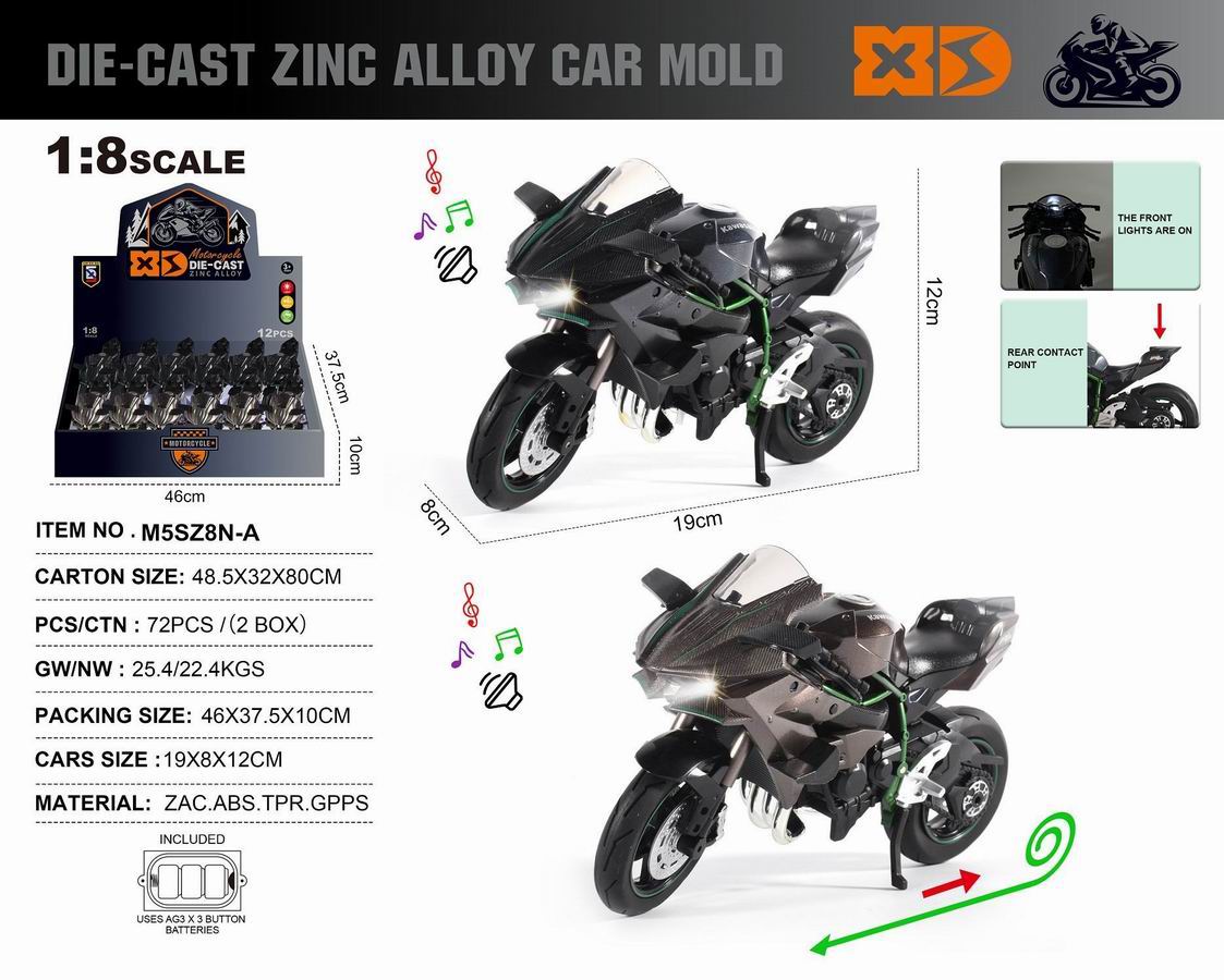 英文1:8压铸锌合金川崎H2摩托车12只/展示盒 |