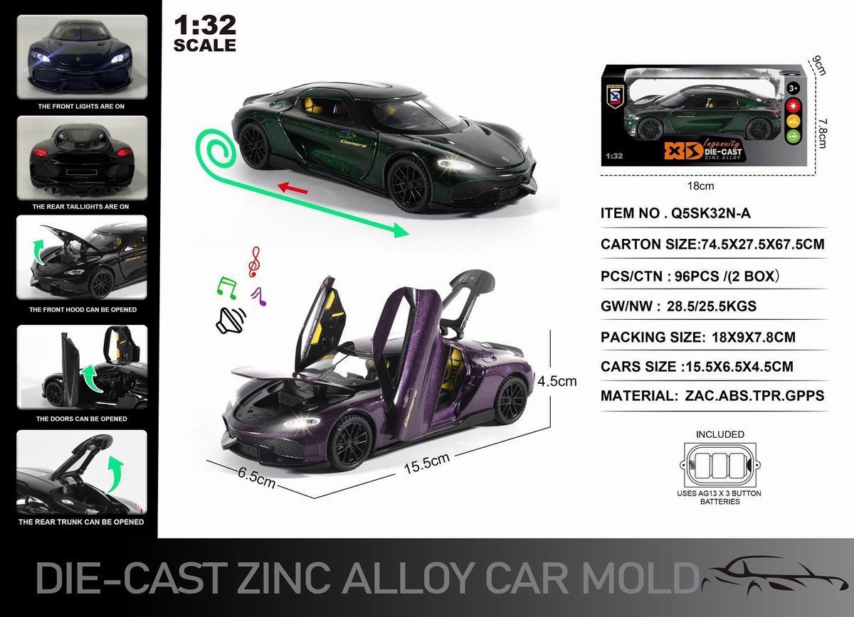 英文1:32压铸锌合金灯光音效柯尼塞格-双子座车模 |