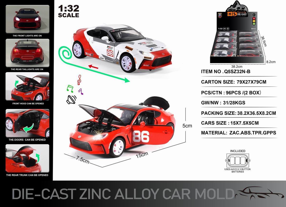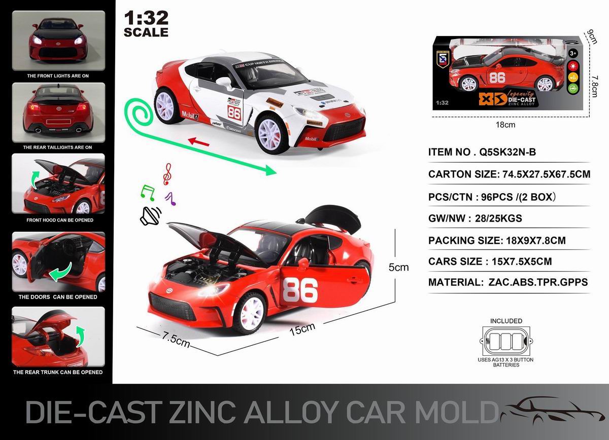 英文1:32压铸锌合金灯光音效丰田-GR86车模 |