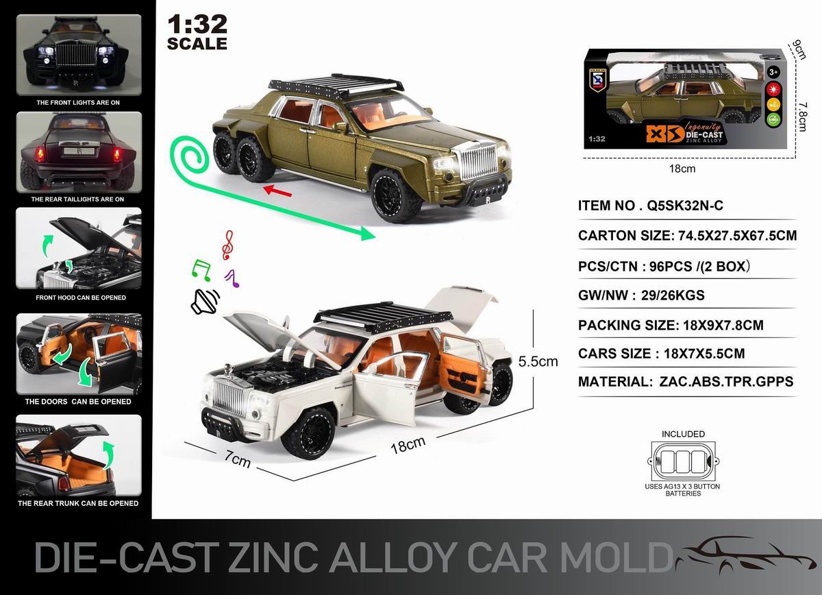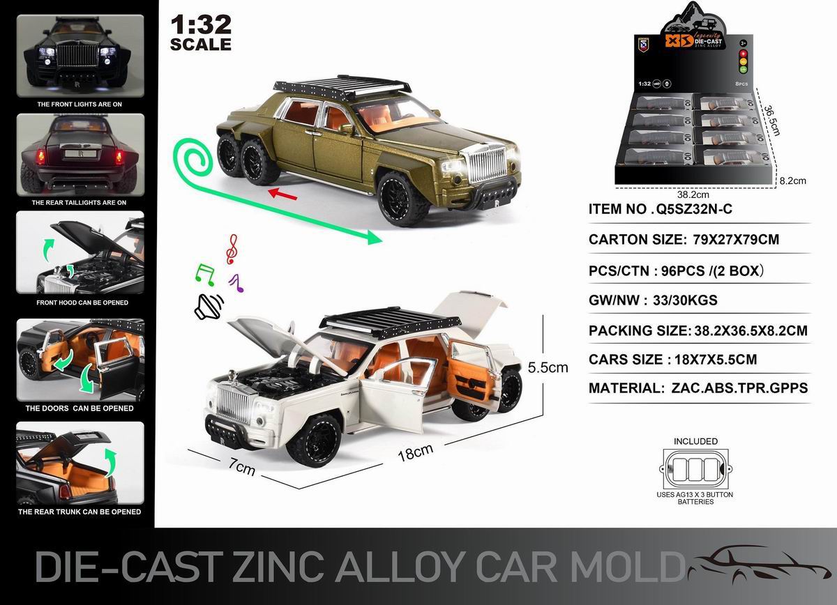英文1:32压铸锌合金灯光音效劳斯莱斯-幻影6*6 车模 |
