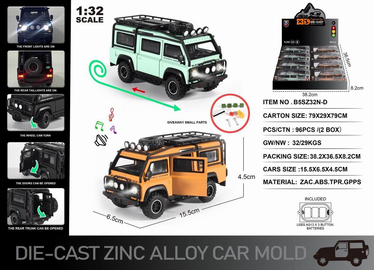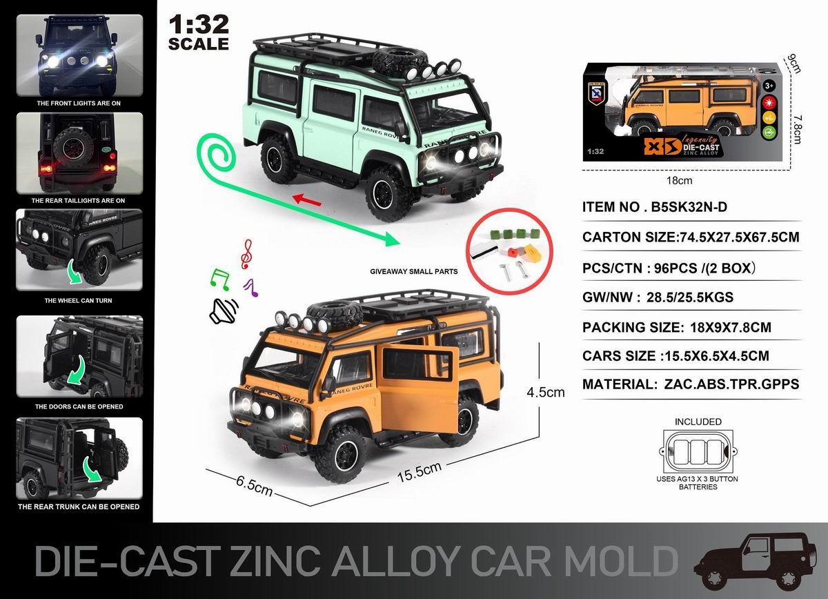 英文1:32压铸锌合金灯光音效路虎卫士面包车车模 |