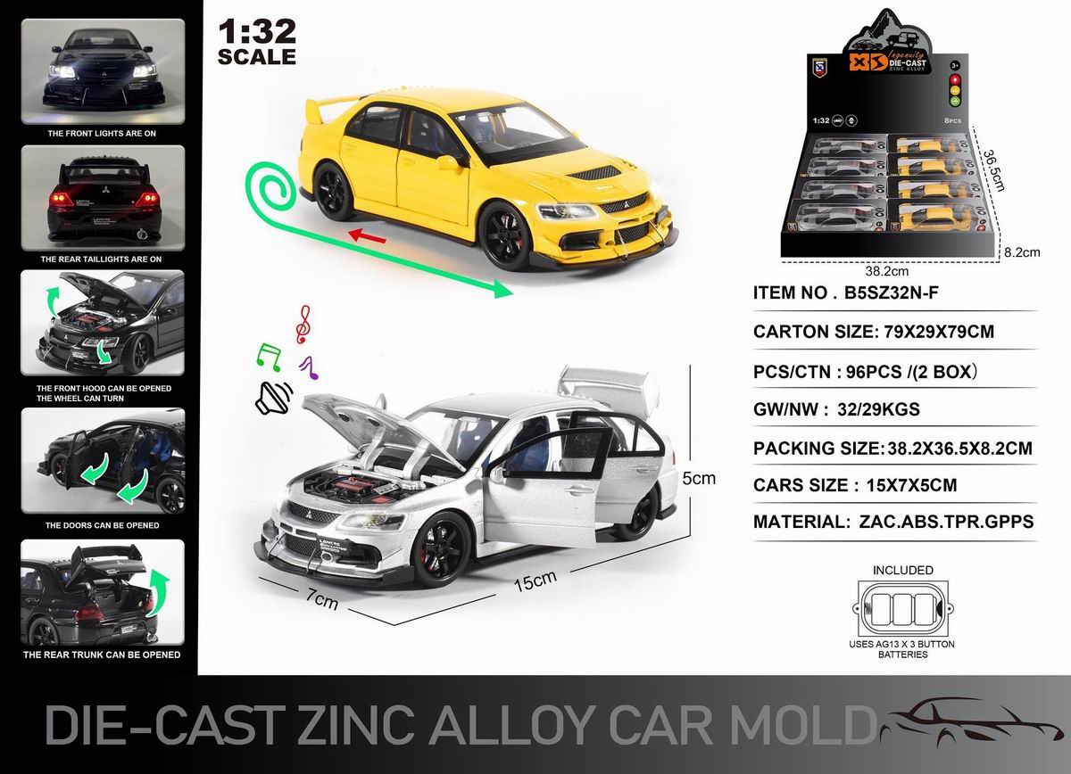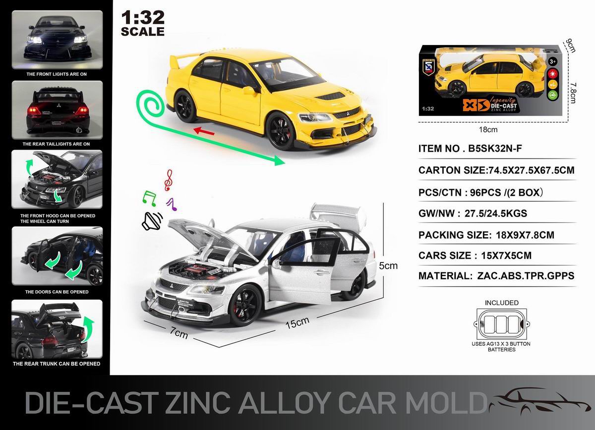 英文1:32压铸锌合金灯光音效三菱九代EVO车模 |