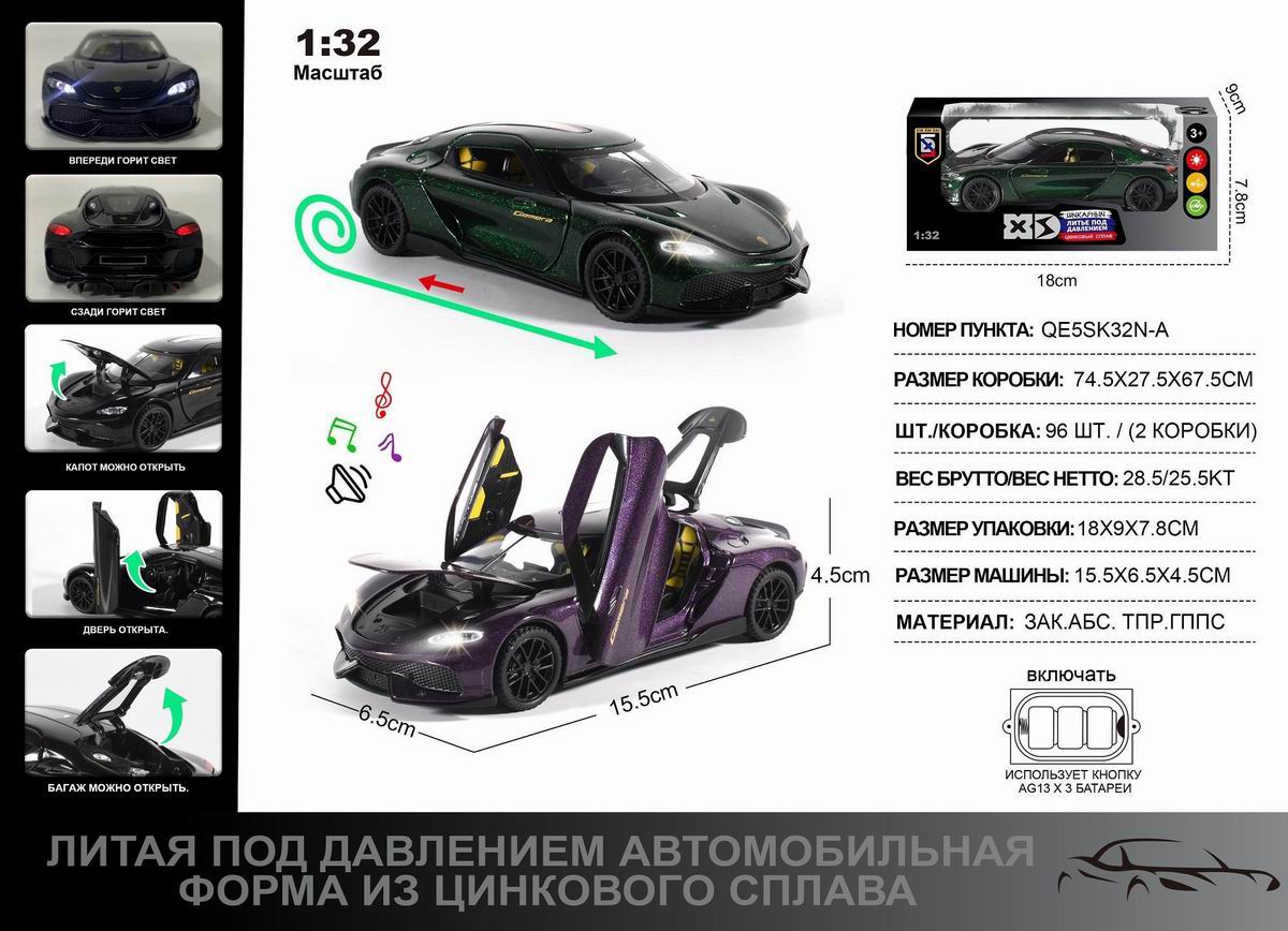 俄文1:32压铸锌合金灯光音效柯尼塞格-双子座车模