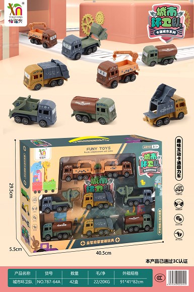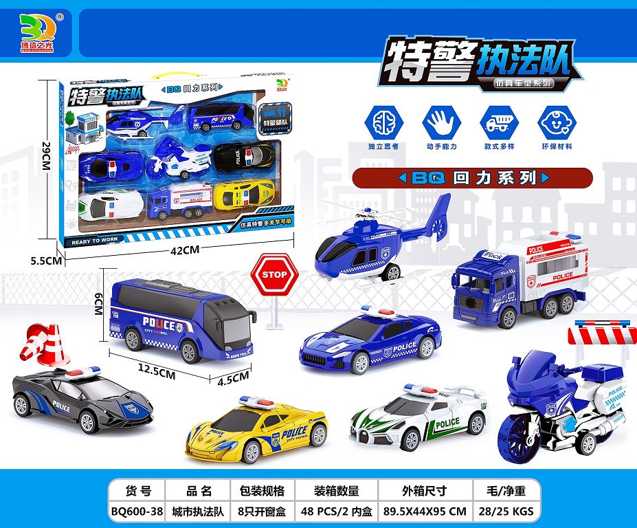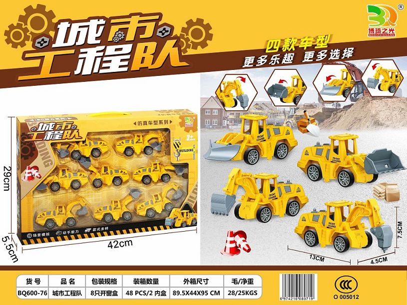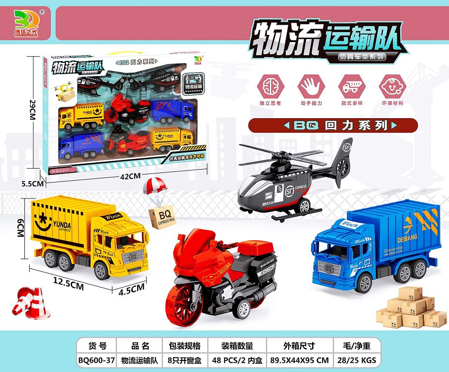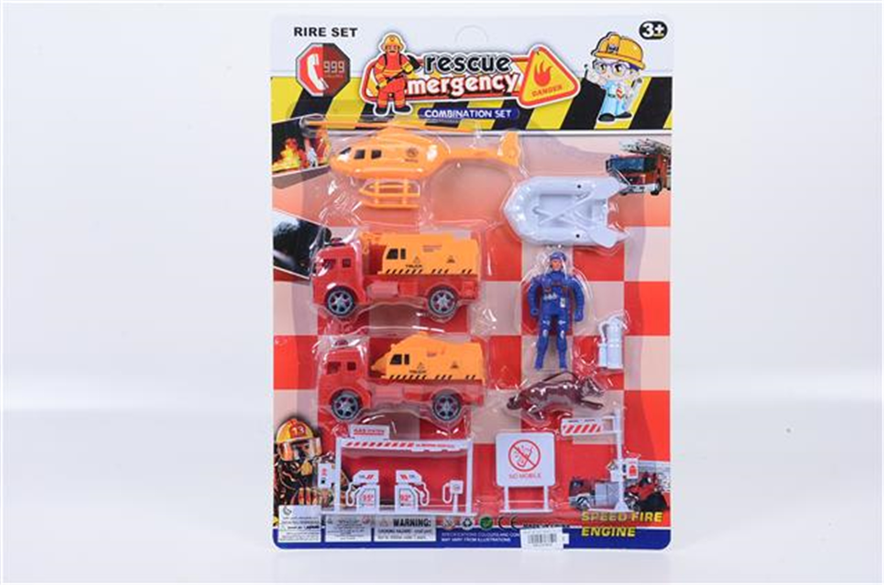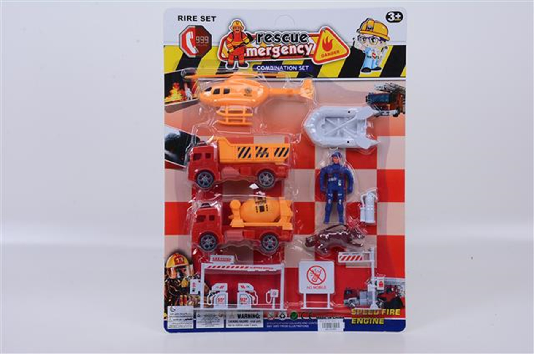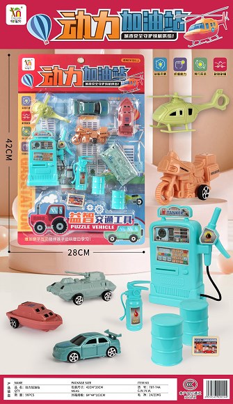 吸板2只实色移印回力工程车配直升机军人加油站套装