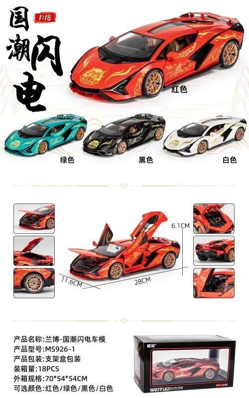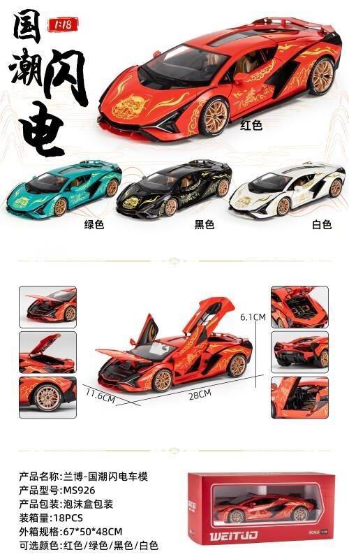 1:18国潮闪电(回力,带灯光带音乐,可开门)红/蓝/白/黑四个颜色 |