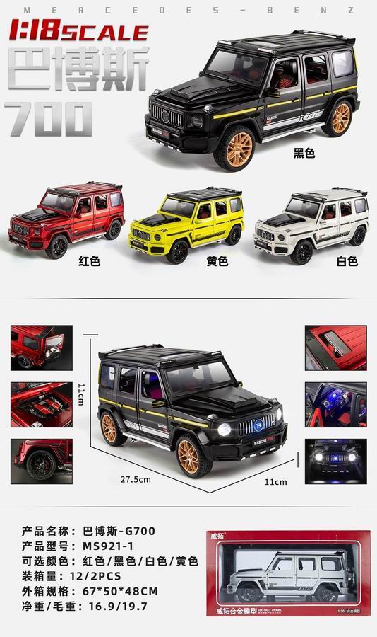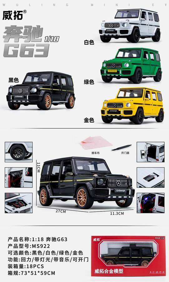 1:18大G(回力,带灯光带音乐,可开门)黑/白/绿/金每个颜色装一件,清装! |