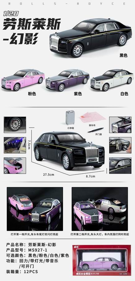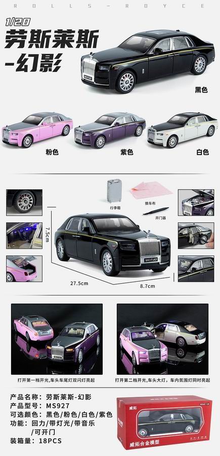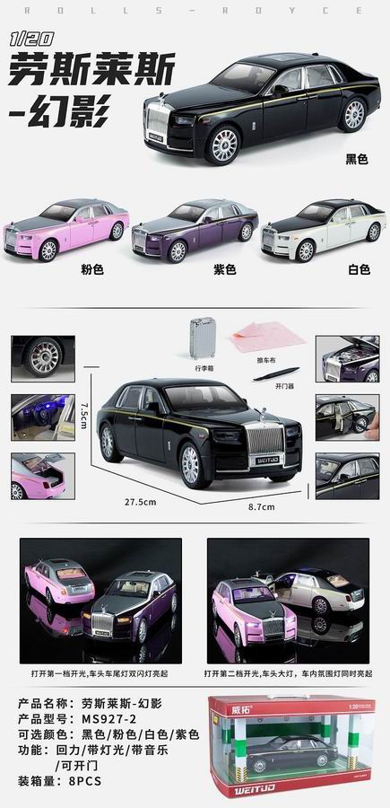 1:20劳斯莱斯幻影(回力,带灯光带音乐,可开门)红/紫/白/黑四个颜色 |