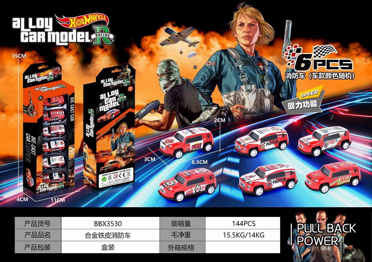 回力车合金铁皮消防吉普越野车(6PCS) |