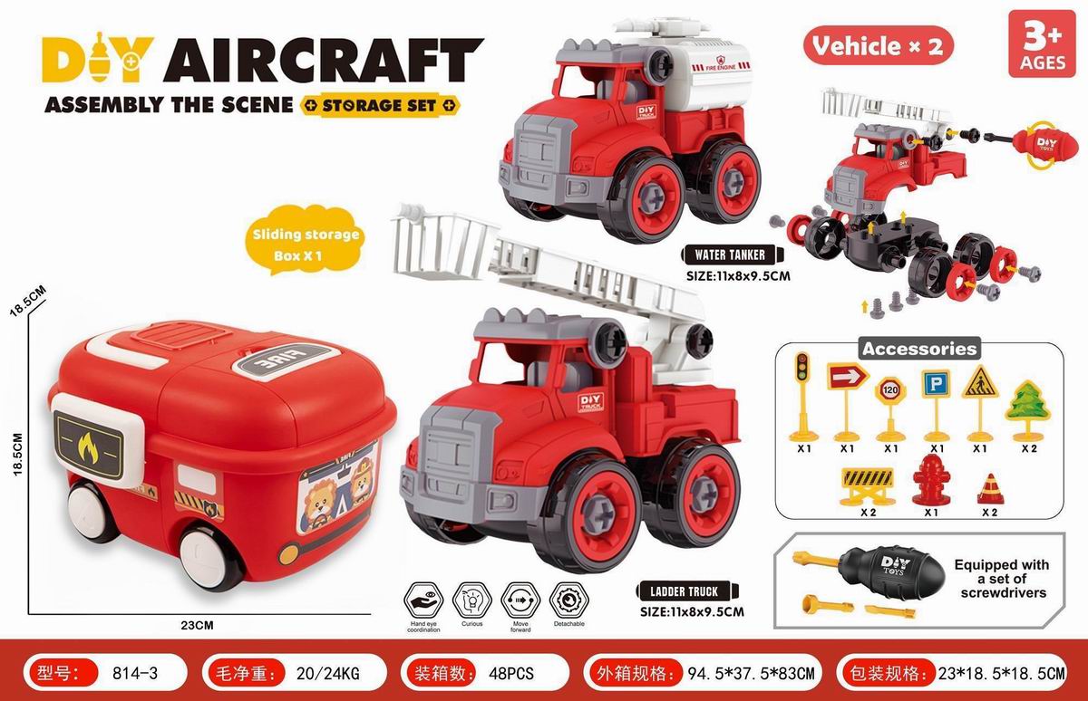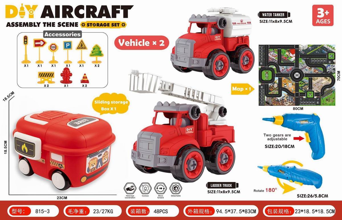 DIY拆装双层拖板车+皮卡车+越野车+跑车,带灯光声音(包3粒AG13电池) |