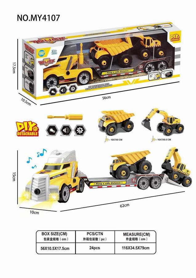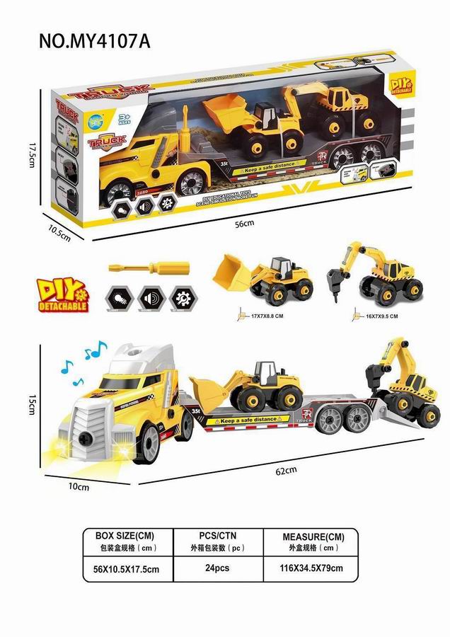 拖头平板车+泄斗/挖土车(带灯光声音)包3*AG13 |