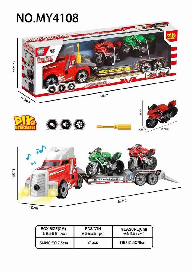 拖头平板车+2只DIY川崎摩托车红/绿(带灯光声音)包3*AG13 |