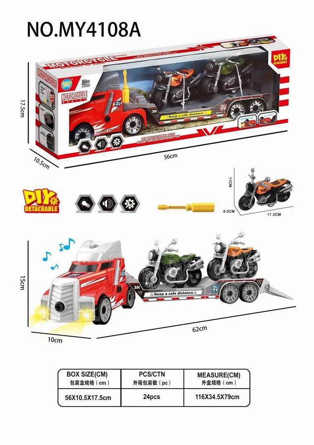 拖头平板车+摩托车/警车(带灯光声音)包3*AG13 |
