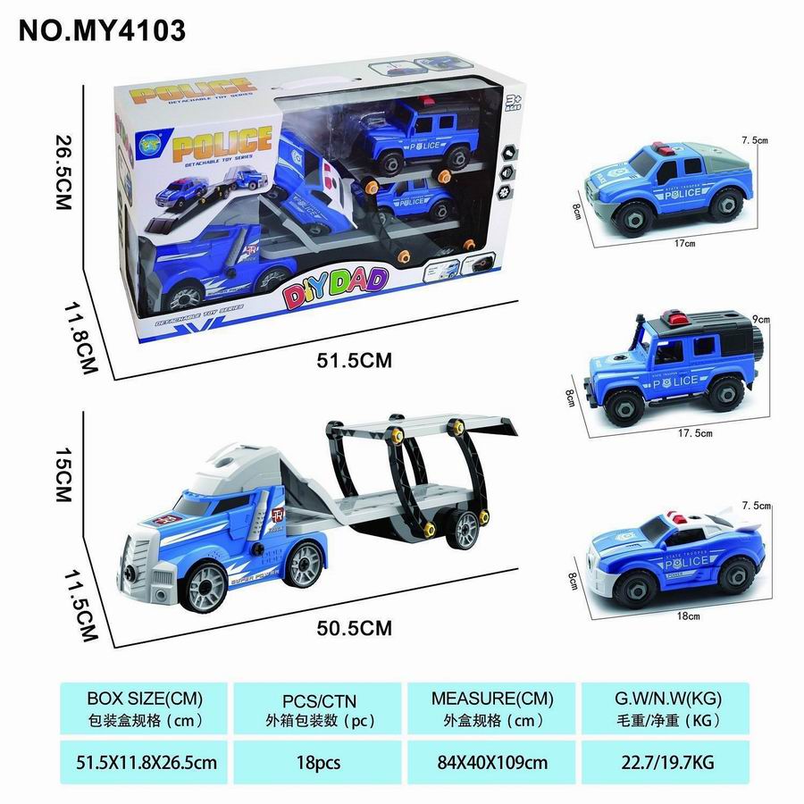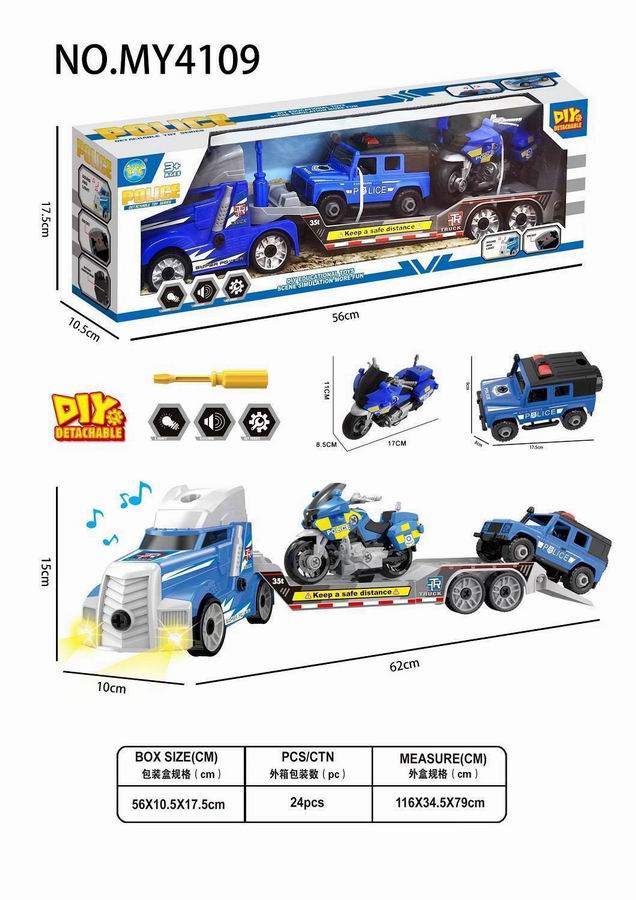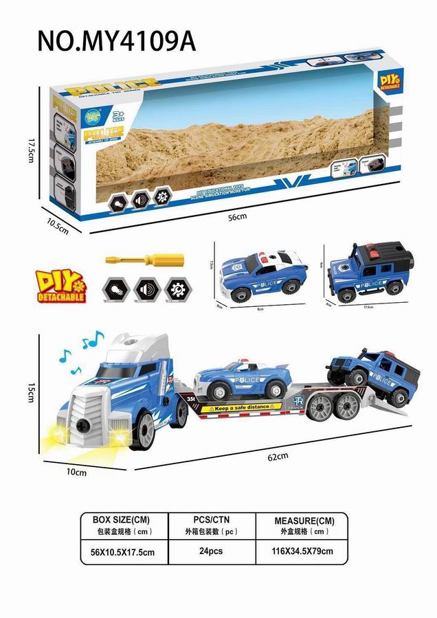拖头平板车+2只警车(带灯光声音)包3*AG13 |