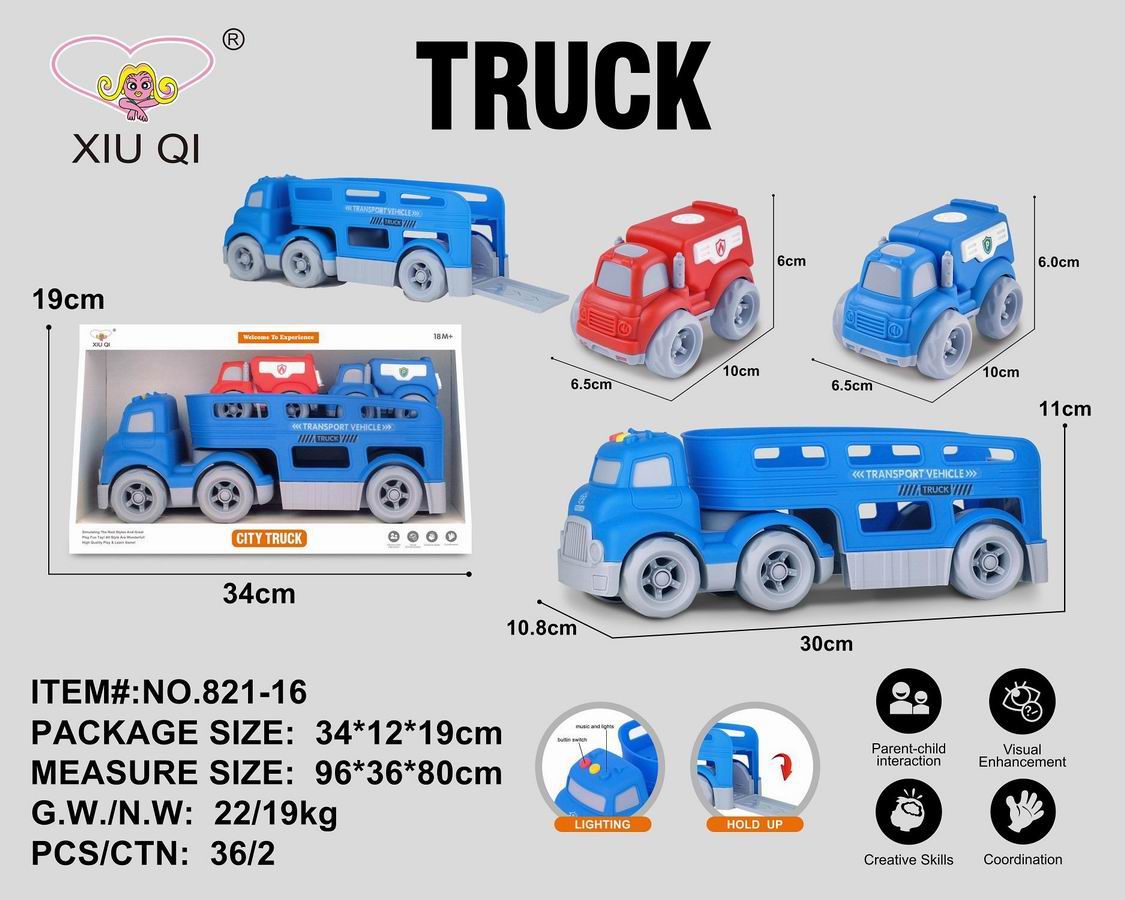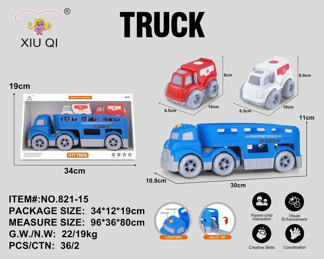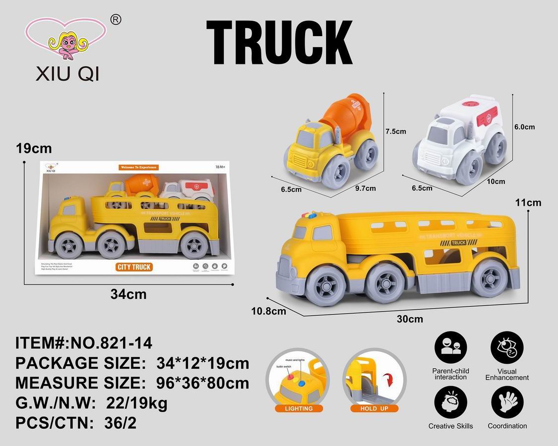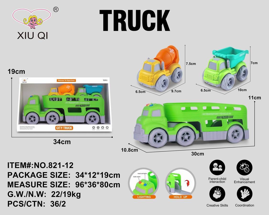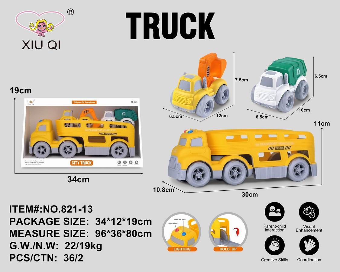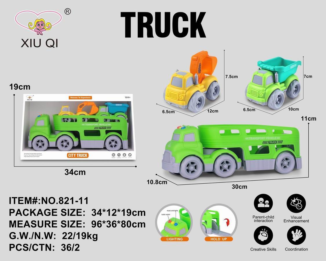 滑行卡通拖头运输车(带灯光音乐,带2只滑行车) |